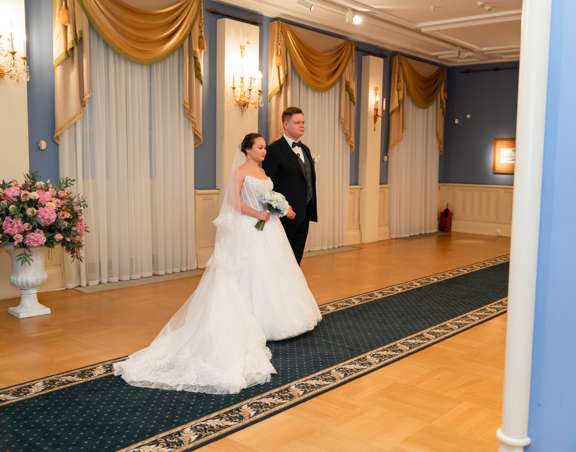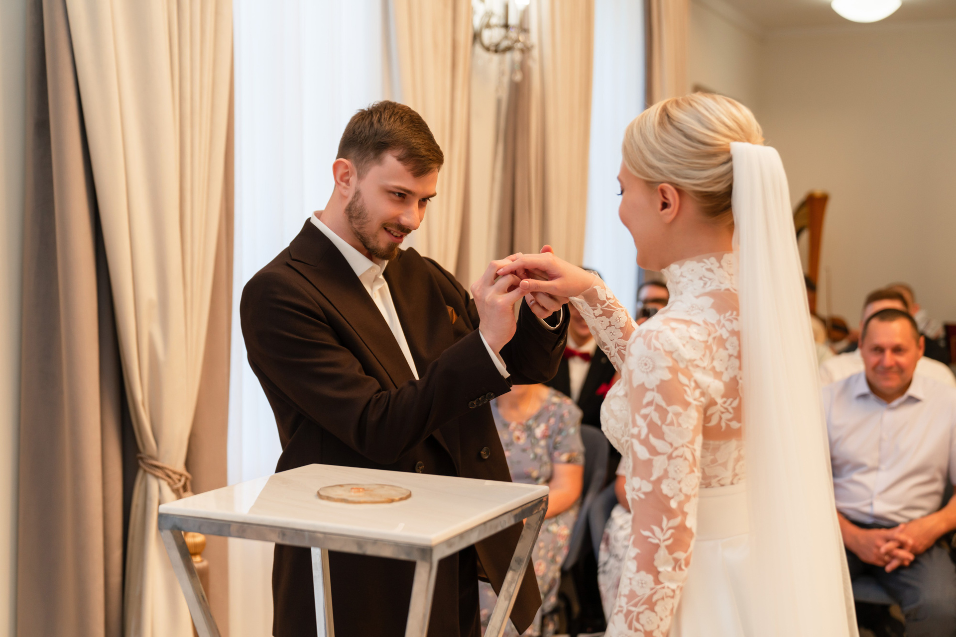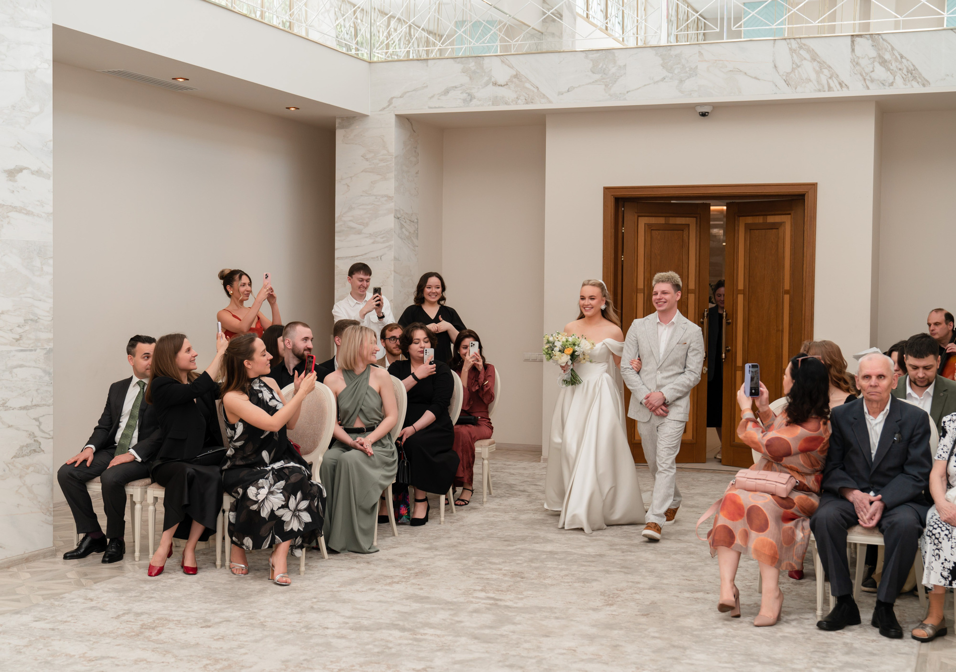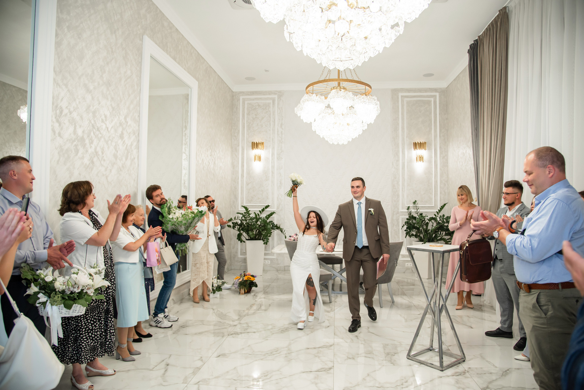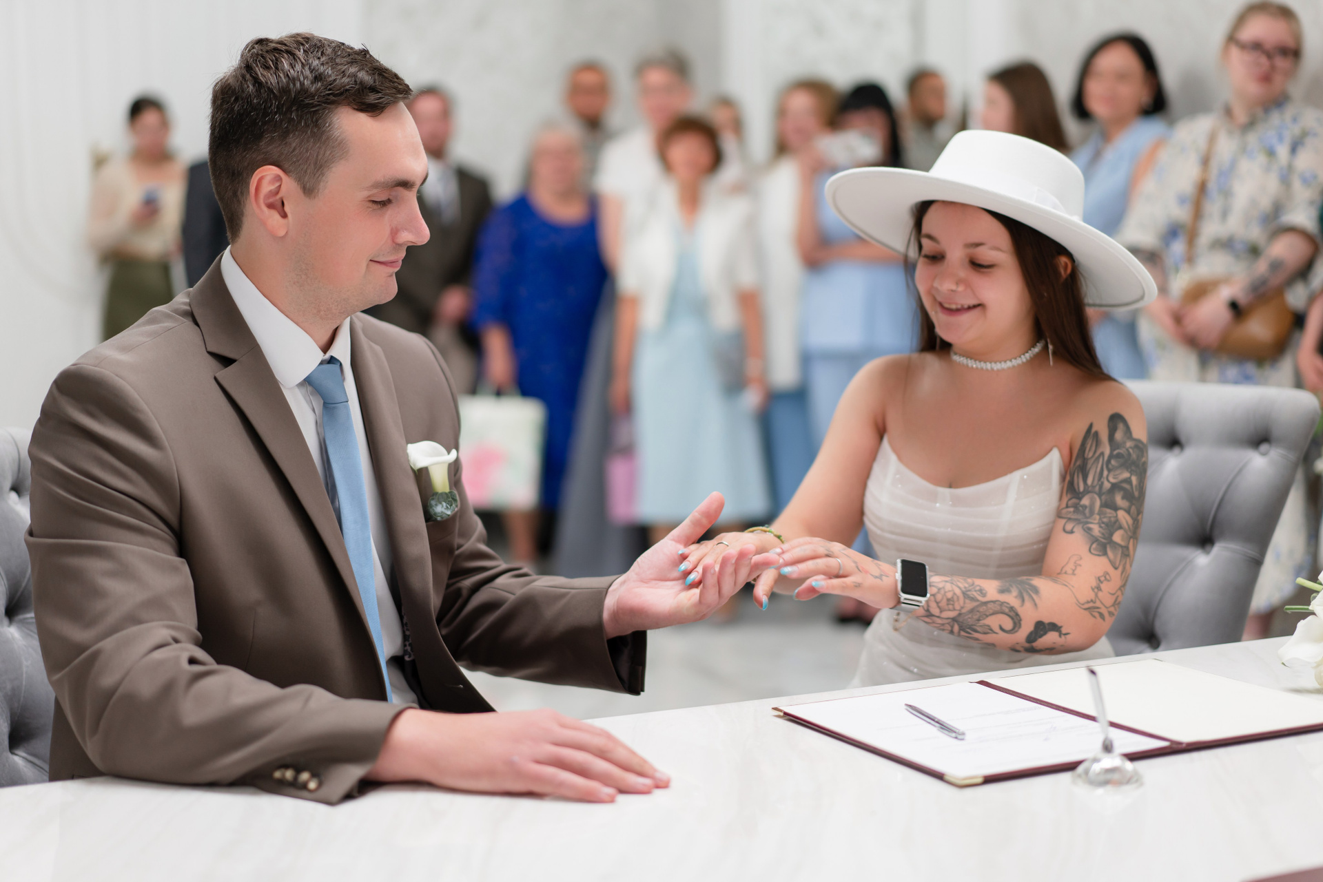 - Торжественная церемония в ЗАГСе: Проходит в красивом зале с речью регистратора, обменом кольцами. Это традиционный праздник, где можно присутствовать с родственниками и друзьями.